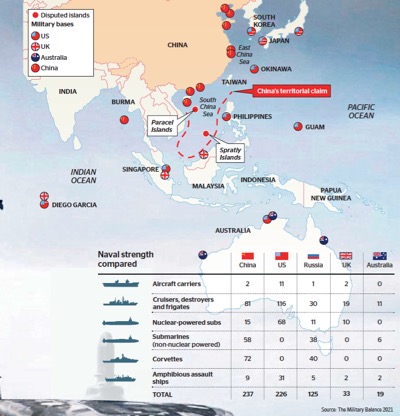 Until now, and probably still today, the United States considers that having nuclear-powered ships opens the way quickly to the construction of atomic bombs. This is why it has only offered nuclear propulsion technology to its British ally. Therefore – and whatever the Australians say – building nuclear-powered submarines prepares Australia for entry into the club of atomic powers. The war against China will be a nuclear war. [4]