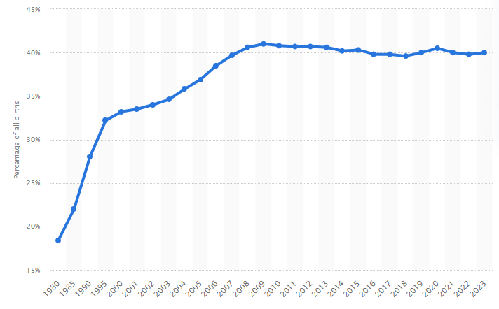 After all, how is the assumption that the husband is the father even relevant in a society where 40 percent of children have been born to unwed mothers since 2008?
