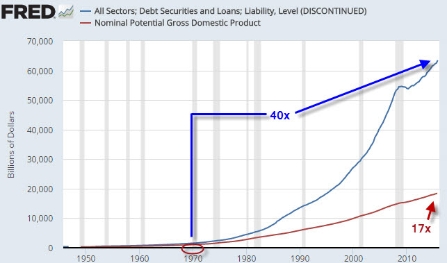 To support the current level of asset prices, we have been growing our debts more than twice as fast as our national income (GDP). Any household knows that you can't do this for long before insolvency occurs. Nations -- even those with a printing press -- can't escape this same fate in the long run.